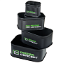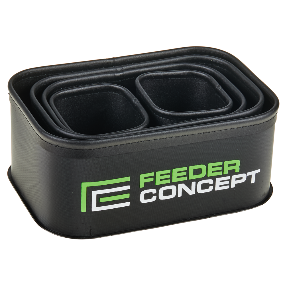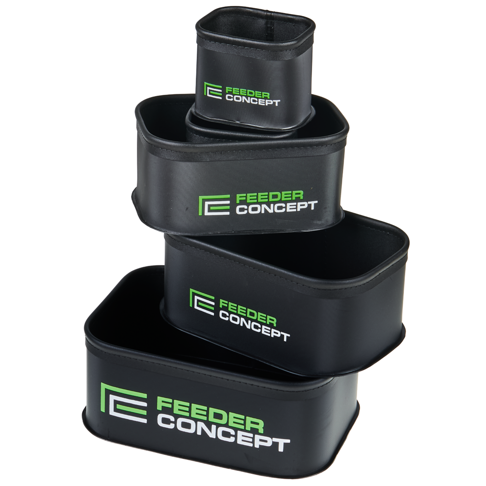 Trauki izgatavoti no EVA materiāla, kas pēc copes ļauj tos ātri un kvalitatīvi izmazgāt — nav nepieciešama ilgstoša žāvēšana. Kompaktais komplekts vienmēr ir pa rokai un ievērojami ietaupa vietu, organizējot barību, ēsmas un dzīvās ēsmas transportēšanu un uzglabāšanu.