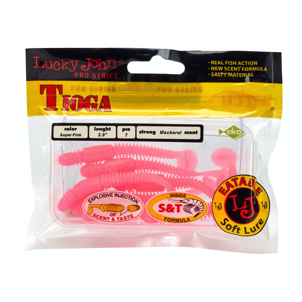 Lucky John TIOGA ir māneklis, kas īpaši izstrādāts asaru un zandartu ķeršanai. Unikālā korpusa forma ūdenī rada šūpojošas kustības, kas piesaista plēsējus. Sānu rievojums pastiprina mānekļa spēli, padarot tā kustības dabiskākas. Šim hibrīda māneklim ir tārpam līdzīgs korpuss ar raksturīgu sabiezinājumu priekšējā daļā un nelielu astīti. Māneklis ir impregnēts ar noturīgu makreles aromātu. TIOGA ir pieejams vairākās krāsu variācijās un 5 izmēros – 2” (5,1 cm), 2,4” (6,1 cm), 2,9” (7,4 cm), 3,4” (8,6 cm) un 3,9” (9,9 cm).