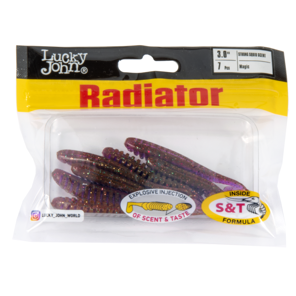 Lucky John RADIATOR ir rievots silikona māneklis ar augstu korpusu, kas izceļas ar īpašu “radiatora” tipa padziļinājumu sānos. Šī konstrukcija piešķir māneklim pastiprinātu elastību un aktīvu, dabisku spēli pat pie lēnas ievilkšanas. RADIATOR ir universāls māneklis, kas lieliski darbojas gan ar klasisko džiga galvu, gan dažādās sistēmās ar svina vai volframa ausainēm. Piemērots makšķerēšanai dažādos apstākļos un ūdenstilpēs. Mērķa zivs - asaris, zandarts, līdaka. Pieejams dažadās krāsās un divos izmēros – 2” (5,0 cm) un 3” (7,5 cm).