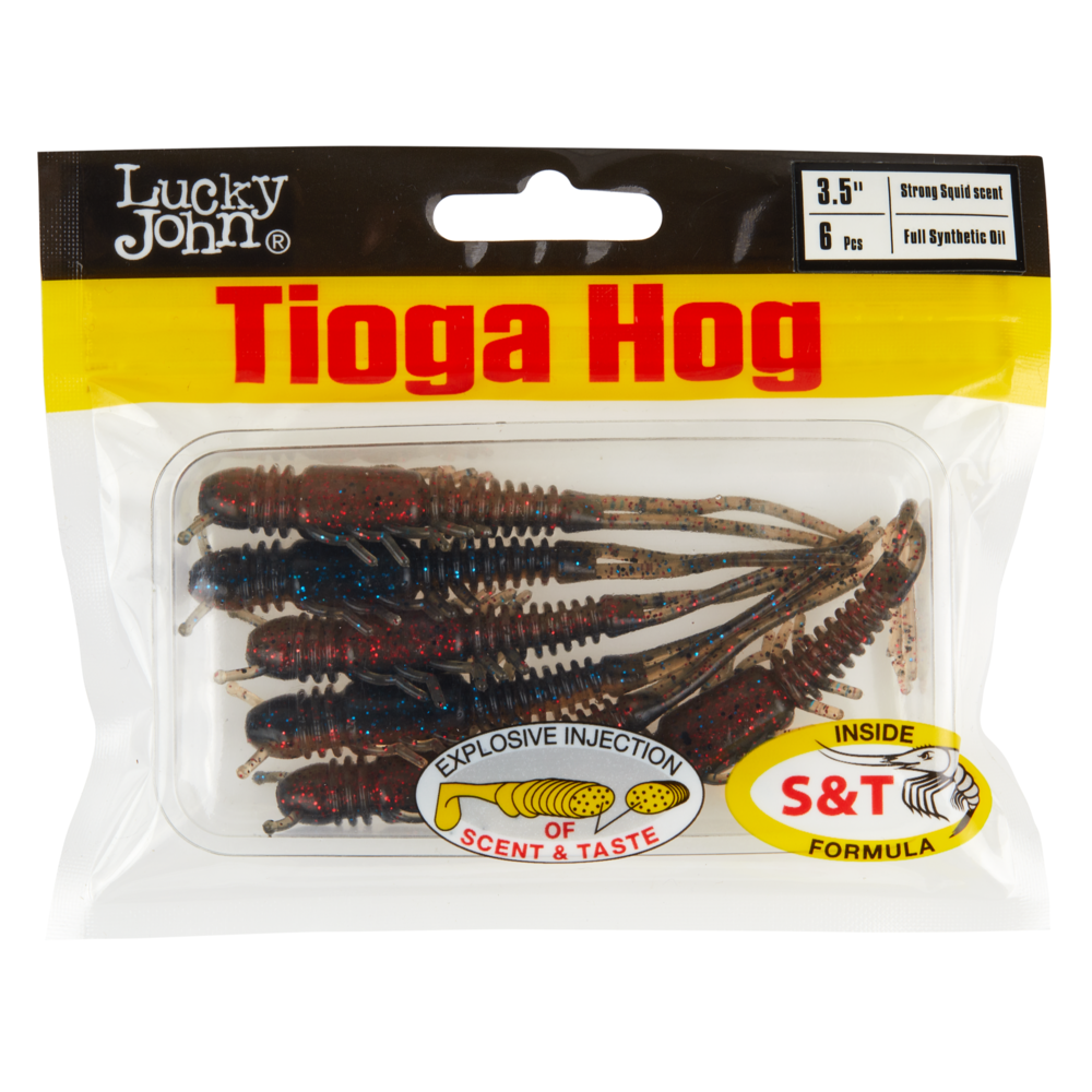 TIOGA HOG - jaunums no Lucky John! Tas imitē ūdens kukaini, ar antenām, kājām un asti, kas raksturīgas šim kukaiņu veidam. Māneklis ir piemērots dažādām makšķerēšanas tehnikām, ko izmanto spiningošanā. Aromatizētais silikons uzlabo copju biežumu. TIOGA HOG ir lielisks māneklis, ķerot pat pasīvu plēsēju, kas atsakās reaģēt uz citām ēsmām. Izmēru diapazons 2,5 un 3,5 collas ļauj pielāgot izmēru dažādiem makšķerēšanas apstākļiem.