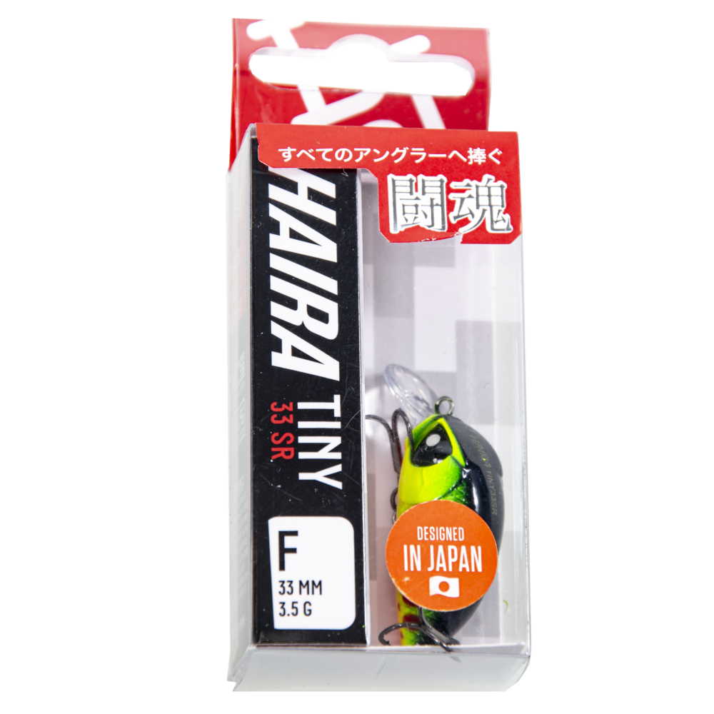 Lucky John Haira Tiny SR ir košs crankbait tipa vobleris ar īsu, viegli ieapaļu korpusu un izteiksmīgām acīm. Modelis aprīkots ar nelielu ieniršanas mēlīti, un pie ātrākas ievilkšanas darba dziļums parasti sasniedz līdz 0,5 m.