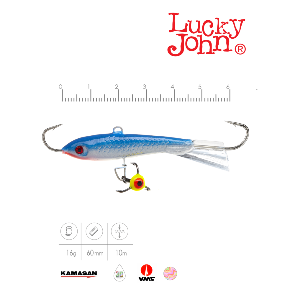 Populārs balansiera Lucky John CLASSIC izmērs, ieteicams zandartu ķeršanai dziļumā līdz 13 metriem, ja nav straumes. Ķerot ar šo mānekli ieteicams izmantot 0,18 - 0,25mm biezu monofīlo auklu (zandartu un līdaku ķeršanai līdz 0,30mm) vai 0,11 - 0,15mm biezu pīto auklu. Balansieris aprīkots ar japāņu ražotāja KAMASAN āķiem. Ieteicams asaru, līdaku un zandartu ķeršanai. Ražots Latvijā.
