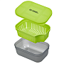 Ёмкость для хранения наживок и насадок изготовлена из ударопрочного пластика. Крышка плотно садиться на емкость, не позволяя наживкам вылазить из банки. Перфорация в крышке обеспечивает проветривание наживок и насадок. В комплекте с ёмкостью идет лоток-вкладыш, который позволяет быстро менять воду в насадках или наживках, промывать их от мусора. Также вкладыш позволяет комфортно увлажнять пеллетс. Объем 600мл.