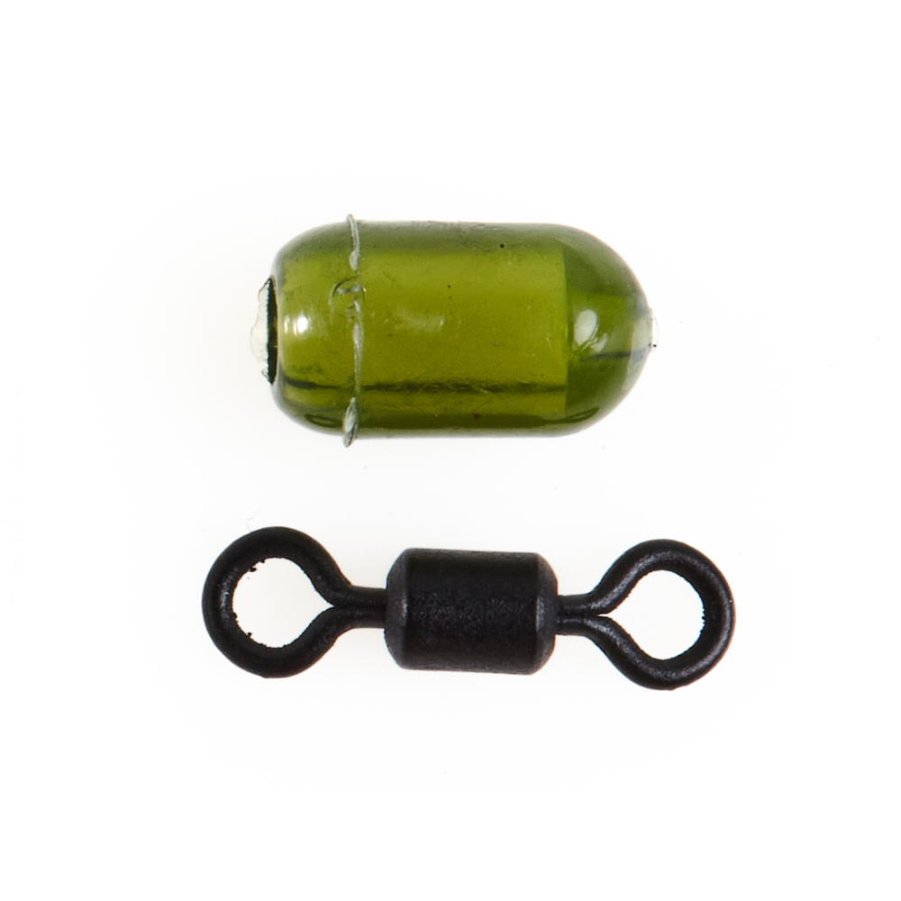 Вертлюг с овальной бусиной используется в месте крепления поводка (оснастки) к основной леске. Бусина выполняет роль ограничительного буфера, защищающего узел от повреждения кормушкой (грузом).