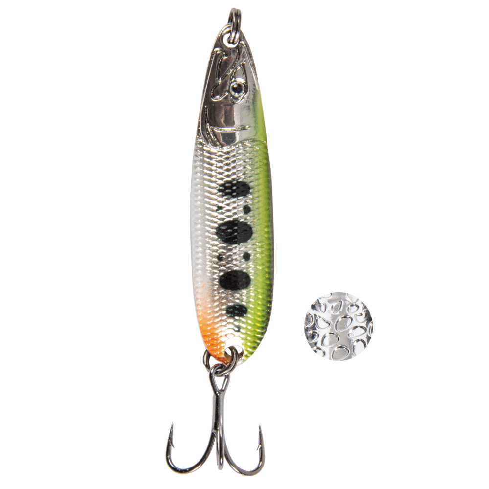 MAIBE SPOON - серия тяжелых колеблющихся блесен предназначенных для ловли на течении и больших глубинах. Основное предназначение ловля лосося. Отличительной чертой блесен является качественное покрытие, которое очень устойчево к истиранию на реках с каменистым дном. Цвета приманок подобраны по рекомендациям экспертов в ловле лосося.