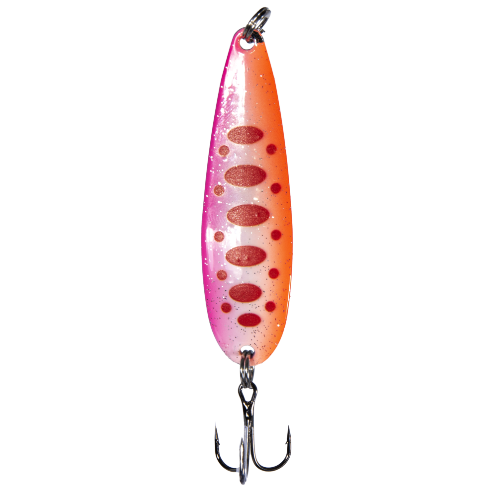 Блесна колеблющаяся SALMON выпускается в трех размерах. Разработана для ловли лососевых рыб при ловли на течении. Модель имеет три весовые категории: 14: 19 и 24 грамма, что позволяет подобрать модель блесны SALMON под разные условия ловли. Блесна имеет высококачественное покрытие, стойкое к корозии и различным условиям ловли на реках с каменистым дном. У приманки наблюдается отличная игра, и при быстрой, и при медленной проводке, что привлекает даже пассивного хищника. Дальность полета при забросе увеличивается пропорционально весу приманки. Цветовая линейка блесен подобрана командой экспертов Lucky John позволяеющая подобрать цвет под определенную прозрачность воды и разное освещение.